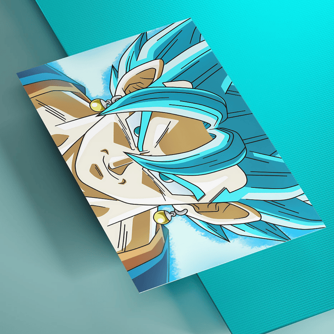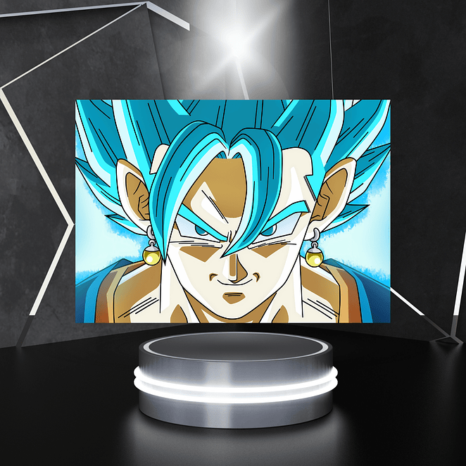 Hermoso cuadro en Aluminio que muestra a la fusion mas poderosa en su maxima transformacion de ssj blue. este cuadro de Vegetto nos deleita con sus hermosos colores y gran calidad en detalles, un producto fabricado en aluminio.